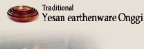 Earthenware Onggi, closest to nature, is a vessel made by coating glaze of mixture of pine ashes, bean chaff ashes and ingredient clay on loess and baking it. As it is made of large particles and lye, it has good ventilation and purifying effect. Yesan Onggi is baked in the heat of 1,250¡Éafter mixing pine branchashes and lye with good ingredient clay, causing it to ferment and coating natural lye made of sediment. Ashes, materials of glaze, has a role of an antiseptic.
